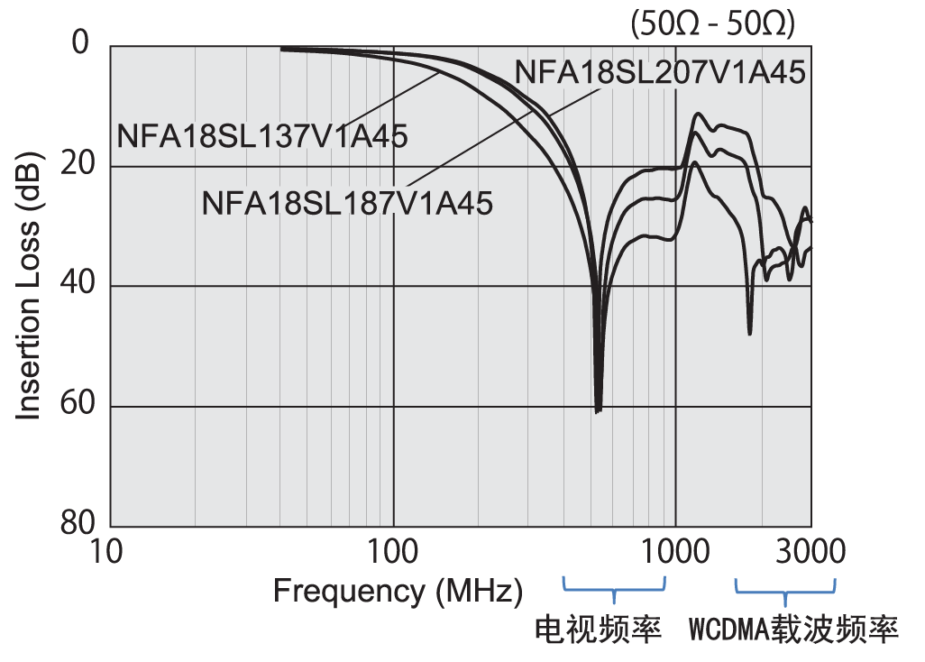 通常,此噪声干扰中,有必要采取抑制措施的频率为手机的载波频率700MHz-2GHz附近,但若搭载了电视调谐器 ,则对于500MHz左右的频率也需要采取抑制措施。常规的LC型滤波器明确表现的自谐振频率为1个,但这类滤波器的令噪声衰减的带宽窄,在需要应对上述大范围的情况下,则性能不足。